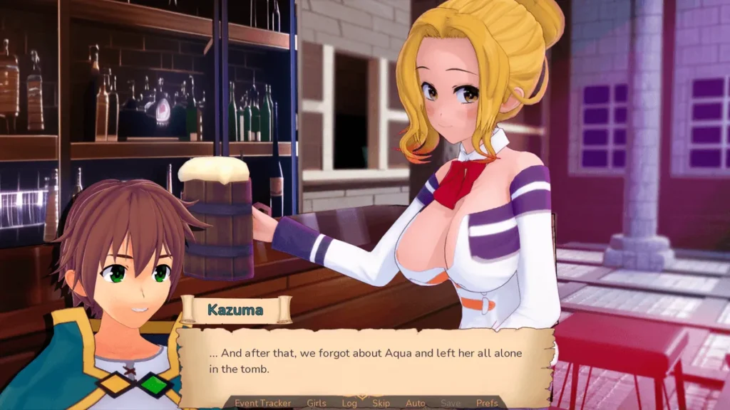 This isn’t a cheap copy-paste job. The genius of this Adventurer Trainer game is how it weaves the soul of Konosuba into its very fabric. The dialogue crackles with the same brand of self-aware, fourth-wall-bending comedy. Aqua is as spectacularly useless and dramatic as you’d hope, Darkness has her… unique motivations, and Megumin is, well, explosively single-minded. 😉