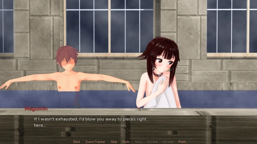 - The Infamous Peeping Mechanics: 👀 A truly Konosuba-inspired feature. You can invest in a “Peeping” skill to, well, spy on your party members (Aqua, Darkness, etc.) in various situations. It’s risky, often hilarious, and adds a layer of mischievous gameplay.