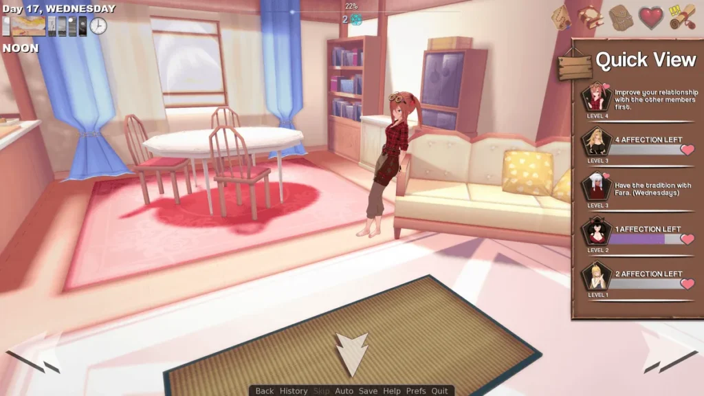 | Time Management ⏳ | Allocate daily action points across all activities. | The core strategic loop; balances plot progression, wealth, and relationships. |
